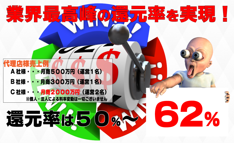 ユーザー利用金額の51.5%〜が代理店様へお支払いする基本料率となります。お支払した金額から、チャットレディさんへの報酬やその他の経費をお支払いただき、残った金額が代理店様の利益となります。